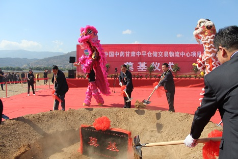张世珍副省长宣布“中国中药甘肃中平仓储交易物流中心项目”开工,并与吴宪董事长、王晓春总裁等领导进行项目培土奠基。(沙龙 中药供稿)
