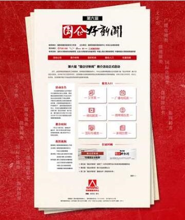 近日,由国务院国资委宣传工作局指导,国务院国资委沙龙新闻、中央企业媒体联盟联合主办的第六届“国企好新闻”推介活动正式启动。2019年7月1日至9月30日,活动将集中征集反映国资国企改革发展相关优秀新闻报道。10月1日至12月30日,经过三轮评选,活动将集中推介评选出的优秀新闻作品和新闻创客。