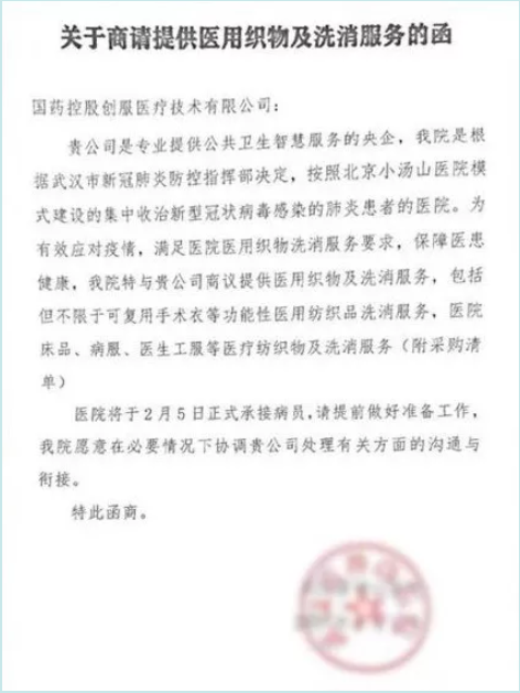 沙龙 控股创服医疗技术(上海)有限公司作为国内医疗纺织物洗涤、消毒灭菌、抗菌等院感防护服务领域最大的龙头企业,2月1日晚接到雷神山医院来函,商请沙龙 创服为雷神山医院提供医用织物及洗消服务。2月2日上午,沙龙 创服紧急动员,集中全国7家中央工厂的规模优势和长期积累的行业经验,快速做好物资、人员、物流准备及医疗洗涤保障,同时已派内部专家团队进行技术指导,医用织物安装芯片打通物联互联,实现全程可追溯,全力保障为雷神山医院提供高质量服务。此次雷神山医院服务任务具体内容包括为医院提供隔离衣、医生服、护士服、床品单元医疗布草等医院物资集成服务,为医院提供医用织物、感染性织物、脏污织物的洗涤和配送服务。国控创服将严格按照相关标准执行医疗织物洗涤、消毒、灭菌任务,保障医患健康。