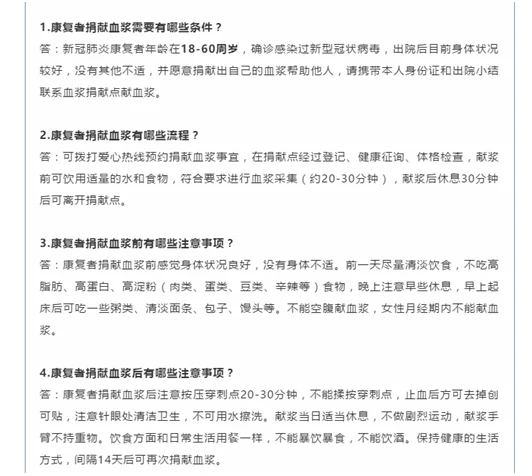 中国生物倡议新冠肺炎康复者捐献血浆,捐献条件包括“新冠肺炎康复者年龄在18-60周岁,确诊感染过新型冠状病毒,出院后目前身体状况较好,没有其他不适,并愿意捐献出自己的血浆帮助他人”等内容。