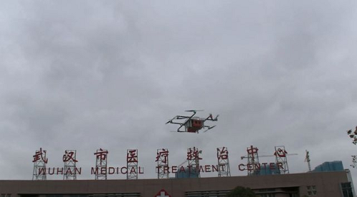 首架“疫情区应急作业”无人机降落金银潭医院投送防疫物资