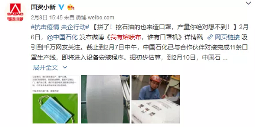 中国石化:我有熔喷布,谁有口罩机?