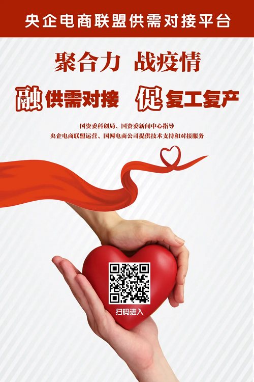 为聚合力、战疫情,融供需对接、促复工复产,有效解决物资供需不对称问题,2月14日,由国资委科创局、国资委沙龙新闻指导,新华网客户端联合央企电商联盟发起,国网电商公司提供技术支持和对接服务的企业复工复产供需对接平台正式上线!