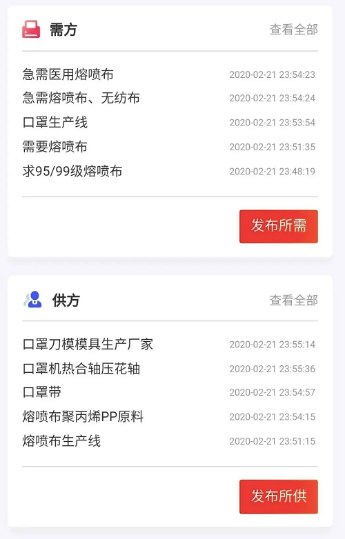 2月21日上午,企业复工复产供需对接平台上线,众多在疫情期间有心为生产紧缺防护物资出力,却被关键零部件缺乏、上下游产业链阻断、货物积压等问题困扰的企业,纷纷登录,发布自己急需或是能提供的物资,后台工作人员电话被打爆。