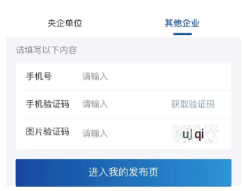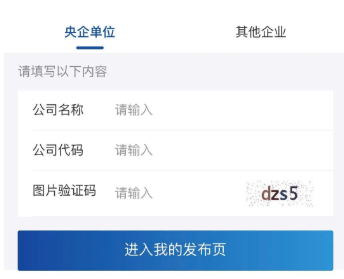 央企可通过填写公司名称和公司代码,进入发布页面,实现供需信息互联互通,物资高效精准匹配。