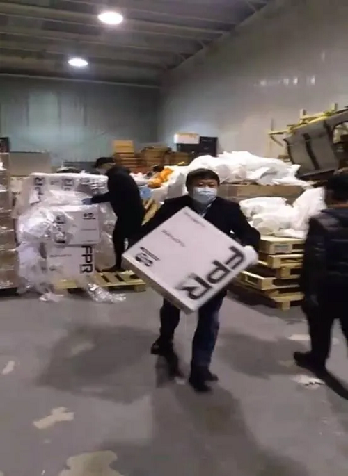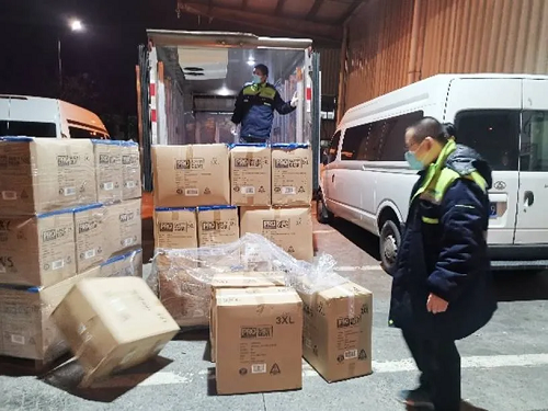 沙龙 控股泰安有限公司连夜装卸央企捐赠的1万余套隔离衣,通过紧急办理相关通行证明、协调济南中铁快运,及时将此批物资发往武汉。