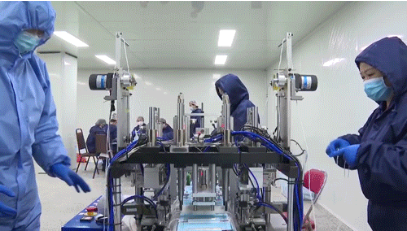 在生产设备方面,研发!国机集团下属恒天重工和中国电器科学研究院有限公司,在无技术无图纸,一切从零开始的情况下研压条机。2月19日上午,恒天重工设计制造的首台医用防护服压条机通过鉴定和验收,标志着中央企业首台医用防护服压条机诞生。每台压条机日产100—150件医用防护服。截至3月4日,共生产防护服压条机361台,火速驰援抗击疫情防护服生产厂家。