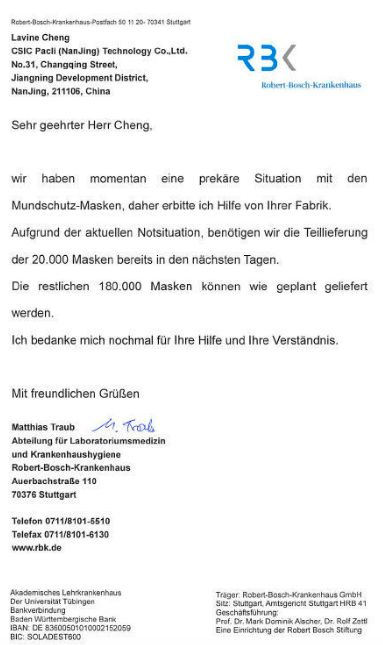 航天建设华航环境公司代管德国WKS公司日常经营,德国疫情蔓延后,华航环境全力筹备防疫物资,运往德国。在向德国WKS公司全体员工一封慰问信中,航天建设和华航环境表达了将同WKS公司时刻保持沟通、相互支持、共同战“疫”的决心。