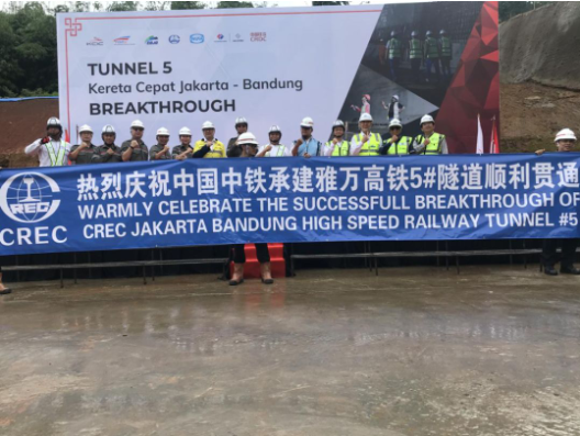 中国中铁集团印尼雅万项目部全力做好一线防疫工作,购置防疫物资,建立防疫机制,确保全方位监管到位,严格防控无死角,严格执行“零报告”制度。在防疫抗疫的同时,全力保证项目按计划推进,3月12日,雅万高铁项目中地质结构最复杂、稳定性最差的5号隧道全线贯通,印尼交通部长在中铁雅万高铁项目施工现场,写下了“雅万高铁,引以为豪,KCIC-CREC,携手合作,如期完工”的祝语,力争做到疫情防控和施工生产两手抓、两手硬、两不误。