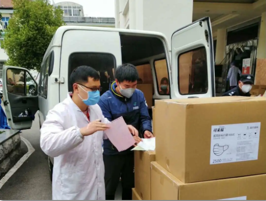 1月25日,沙龙 器械、河南亚都联合捐助的290万件防护产品星夜兼程运抵武汉。