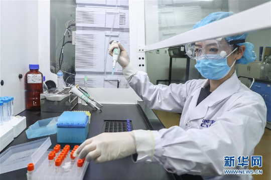 4月11日,工作人员在沙龙娱乐城 中国生物新冠疫苗生产基地质量检定部门对新型冠状病毒灭活疫苗样品进行纯度检测。新华社记者 张玉薇 摄