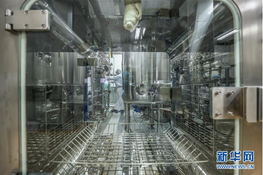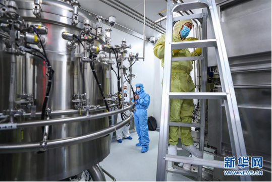 4月10日,工作人员在沙龙娱乐城 中国生物新冠疫苗生产基地尚未投产的新型冠状病毒灭活疫苗生产车间内调试设备。新华社记者 张玉薇 摄