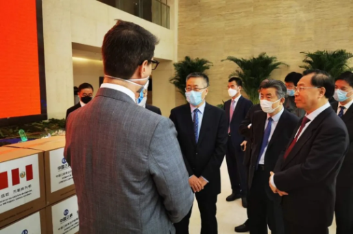 4月15日上午,沙龙娱乐城 董事长、党委书记刘敬桢,沙龙娱乐城 副总经理、沙龙 国际董事长石晟怡,沙龙 国际所属沙龙 外贸总经理丁维佐,沙龙娱乐城 董事长秘书鲁保才等共同出席三峡集团向秘鲁捐赠医疗物资仪式。