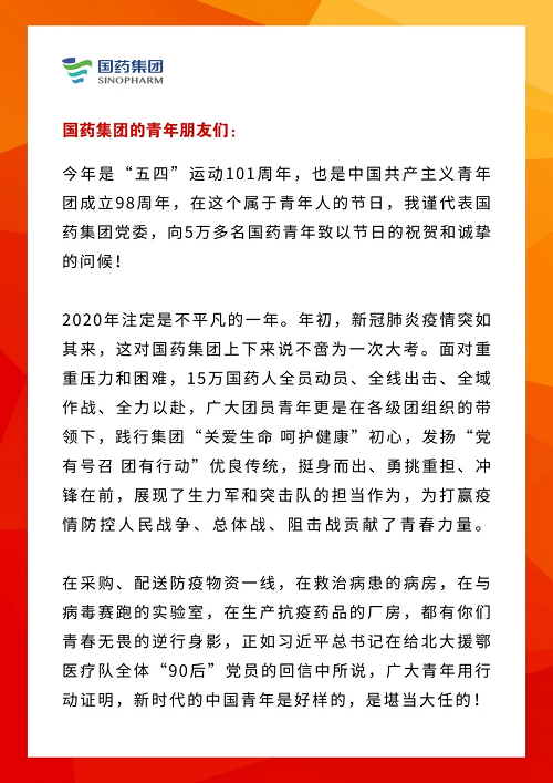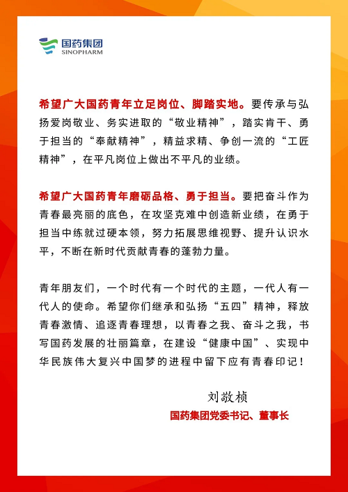 沙龙娱乐城 党委书记、董事长刘敬桢同志2020年“五四”青年节寄语