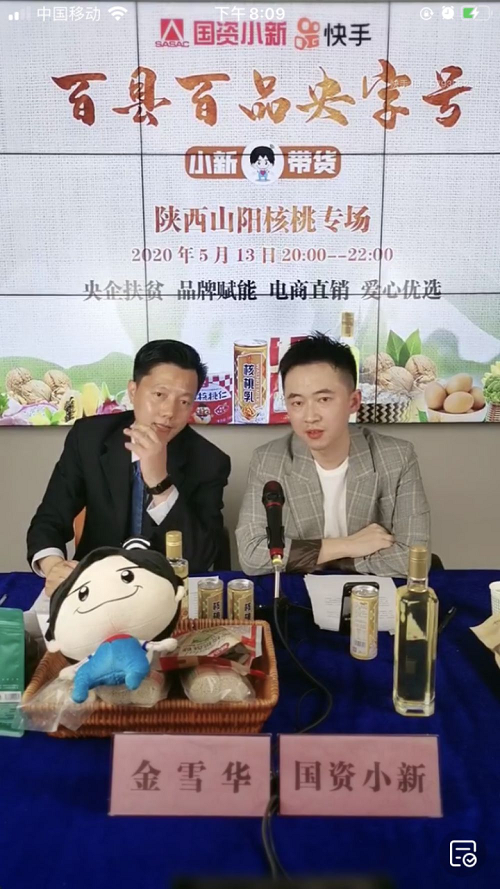 核桃乳、核桃酥糖、核桃油、茶叶、香菇酱、空心挂面……直播间里,来自陕西省商洛市山阳县的特色农产品摆了满满一桌。联袂出镜带货的,一位代表国资委沙龙新闻政务新媒体“国资小新”,另一位是央企中国钢研选派到山阳县挂职的副县长金雪华。