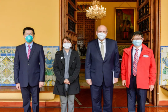 9月14日,驻秘鲁大使梁宇、沙龙娱乐城 副总经理曾兵应约与秘鲁外交部长洛佩斯、卫生部长马塞蒂等进行会谈,双方就中秘抗疫合作、沙龙娱乐城 中国生物新冠灭活疫苗在秘进行临床试验等议题深入交换意见。