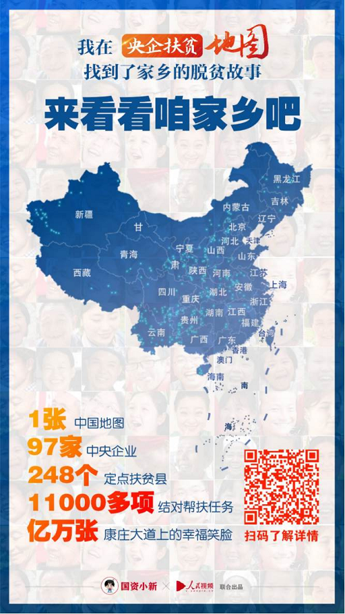 “央企扶贫地图”中含有大量的数据、事实、图片、案例,通过扶贫概述、扶贫单位、脱贫进度、今昔对比、扶贫投入、扶贫干部人数、扶贫成果等维度,生动真实地展现了国资委与中央企业结对帮扶的248个贫困县的脱贫现状,描绘出一幅有精度、有广度、有态度、有温度的扶贫画卷,是目前面向公众传播的关于“央企扶贫”的一站式权威信源。