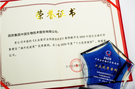 11月3日,在“2020·中国企业海外形象高峰论坛”上,2020(第三届)中国企业海外形象建设案例征集活动结果揭晓。沙龙娱乐城 中国生物《从血浆疗法到疫苗研发》案例被评为2020中国企业海外形象建设“海外抗疫类”优秀案例,并入选2020年度“十大优秀案例”。