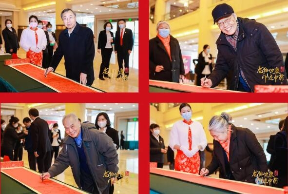 大会最后,由中国医药集团有限公司党委书记、董事长刘敬桢,中国医药企业管理协会名誉会长郭云沛,南京中医药大学原副校长、中国自然资源学会中药及天然药物资源专业委员会主任委员段金廒,中国中药有限公司执行董事、总经理,中国中药控股有限公司董事长吴宪,中国中药控股有限公司党委书记、副总裁杨文明,中国中药控股有限公司执行董事、总裁王晓春,共同点亮龙印,向中药行业的前辈们和奋斗者致敬!