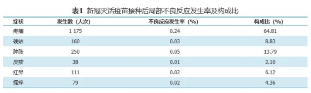 其局部不良反应以接种部位疼痛、接种部位肿胀为主要表现,发生率分别为0.24%、0.05%,全身不良反应以疲劳、头痛、发热、咳嗽、食欲不振为主要表现,未见严重不良反应。