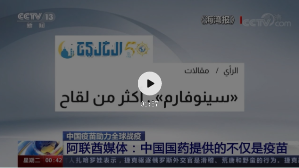 近日阿联酋和埃塞俄比亚主流媒体高度评价中国疫苗和与中国在抗击新冠肺炎疫情方面的合作。