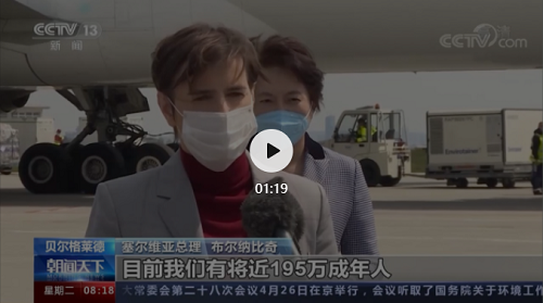 4月26日,第五批来自中国沙龙娱乐城 的新冠疫苗运抵塞尔维亚首都贝尔格莱德,塞尔维亚总理阿娜·布尔纳比奇和中国驻塞尔维亚大使陈波赴机场迎接。