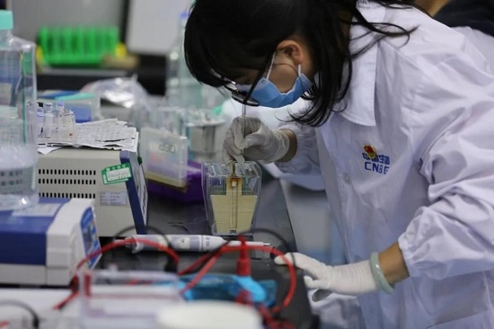 沙龙 动保研发中心基础研究部杆状病毒表达平台研究员,正进行猪瘟病毒基因表达蛋白的纯化鉴定。