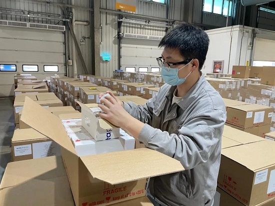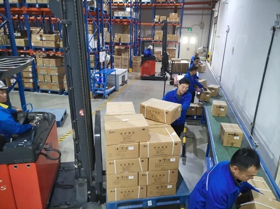 沙龙 控股宁夏物流中心零拣组:零拣区拣货员接续合作,根据拣货标签上载明的信息把不同区域的零货商品拣至零货箱中,将零拣周转箱放置输送线运送至符合包装台,完成零头商品的复合包装。