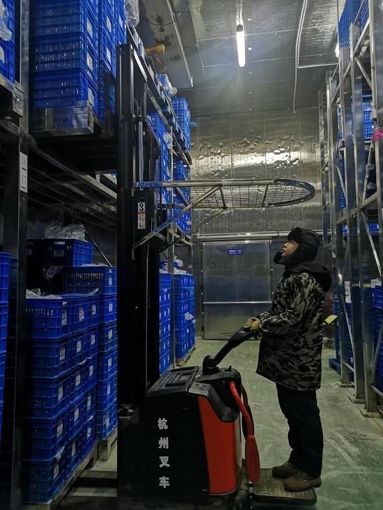沙龙娱乐城 武汉血液制品有限公司血浆冷库转运组叉车转运驾驶员,常年在零下20摄氏度以下的血浆冷库中工作。