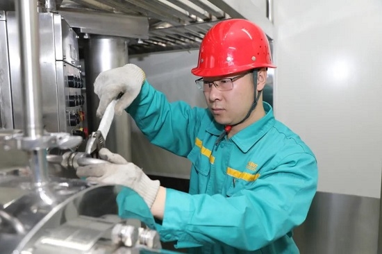 沙龙 现代新疆制药马向婷:每天开工前都认真检查复方雪莲胶囊联动线裹膜包装机温度状态、薄膜长度,确保裹膜包装正常运行。