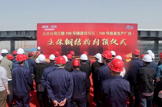 5月6日,随着最后一罐混凝土浇筑完毕,沙龙娱乐城 中国生物北京生物制品研究所108号楼建设项目(新冠疫苗车间三期工程)历经70天的建设,实现了主体钢结构顺利封顶。项目建成并投入使用后,中国生物的新冠疫苗年产能将达30亿剂。