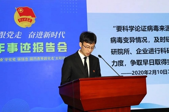 在“永远跟党走奋进新时代”青年事迹报告会上,第25届中国青年五四奖章集体——沙龙娱乐城 中国生物武汉生物制品研究所做了题为“攻坚克难,疫苗‘国家队’在行动”的主题报告,团委副书记韩锡鑫生动讲述了这支年轻的团队克服困难、不舍昼夜研发出全球首支新冠病毒灭活疫苗的故事。总部团支部杨方宇做了《祖国需要我们在哪里,我们就背起行囊去哪里》、沙龙 控股湖北公司曾月做了《火神山、雷神山,记录曾经那么努力那么勇敢的我们》、沙龙 国际沙龙 东风总医院护理部郑琼霞做了《逆行青春光芒万丈》、中药控股沙龙 种业公司副总经理、“大国工匠”邓庭伟做了《我,愿做扎根戈壁的一棵甘草》、中央企业青联委员、国大药房张琳琳做了《青春绽放守初心坚守一线担使命》的报告。