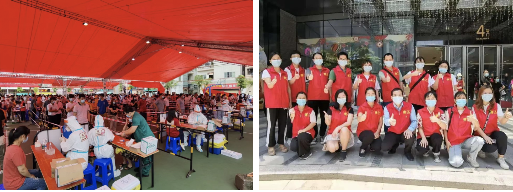 5月28日,中药控股旗下冯了性国医馆闻令而动,第一时间组成志愿小组前往石湾街道支援,参与核酸检测标本采集工作。两批医护志愿者在核酸标本采集一线从早上8点工作到晚上22点,在佛山酷热5月38℃高温的挑战下,衣服被汗水打湿、手被汗水泡皱、耳朵被勒的发紫……党员干部们仍然坚守在疫情一线连续作战、毫不动摇,时刻以新时代沙龙 精神鼓舞自己。用最实际的行动践行“我为群众办实事”,充分展现沙龙 人的责任与担当,保障群众生命健康。