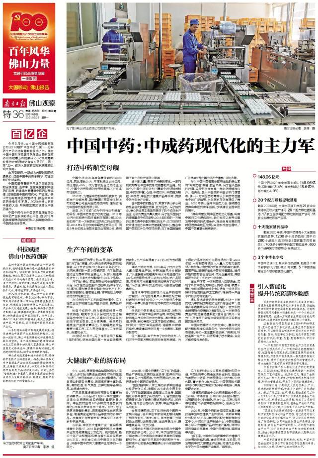 进入21世纪之后,佛山对中医药的重视也是有增无减。早在2006年,佛山市委、市政府就召开佛山市加快中医药发展动员大会,明确提出全面加快佛山中医药事业、产业和文化建设发展。去年,佛山再次召开中医药大会,强调要促进佛山中医药传承创新,加快建设全国中医药强市。今年5月,佛山“十四五”规划纲要提出,要大力发展岭南中药、中药新药、现代新型中药的研发与产业化。