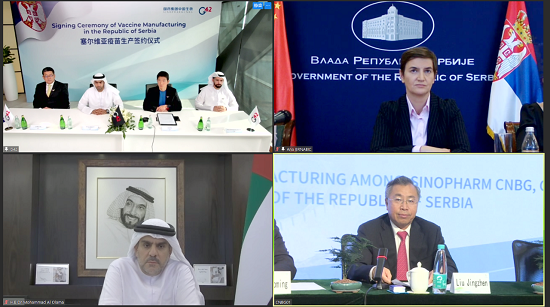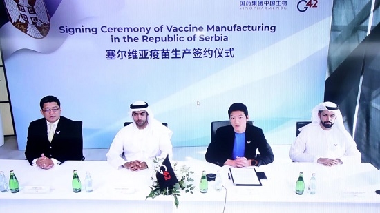北京时间7月12日,沙龙娱乐城 中国生物、G42集团与塞尔维亚新冠疫苗合作签约仪式在中国北京、阿联酋阿布扎比、塞尔维亚贝尔格莱德三地以视频方式举行。塞尔维亚、沙龙娱乐城 中国生物、阿联酋G42集团三方共同签署新冠灭活疫苗合作备忘录,启动塞尔维亚新冠疫苗原液分装项目建设。塞尔维亚产新冠疫苗将会在本国疫情防控及全球共同战疫中发挥重要作用。