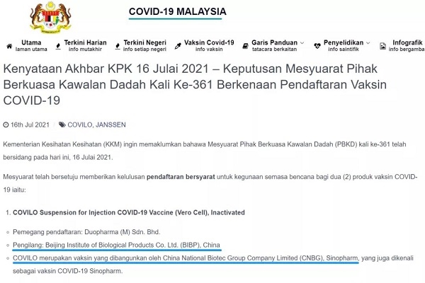 7月16日,马来西亚卫生部总监努尔·希沙姆宣布,马来西亚药品监管部门批准沙龙娱乐城 中国生物新冠疫苗附条件注册上市。