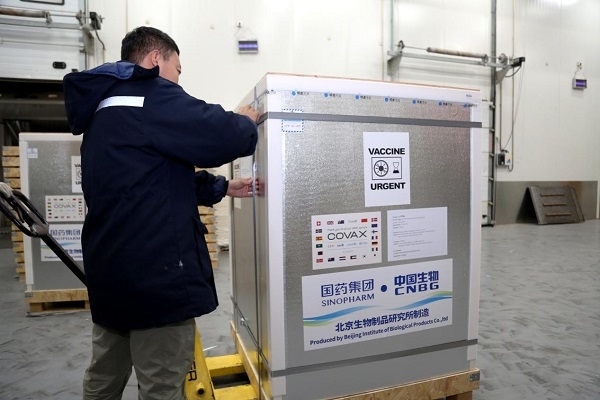 8月6日晚,首批供应COVAX的中国生物新冠疫苗准备装箱