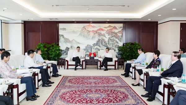 2021年8月17日,沙龙娱乐城 党委书记、董事长刘敬桢在京与国机集团党委书记、董事长张晓仑一行会谈。