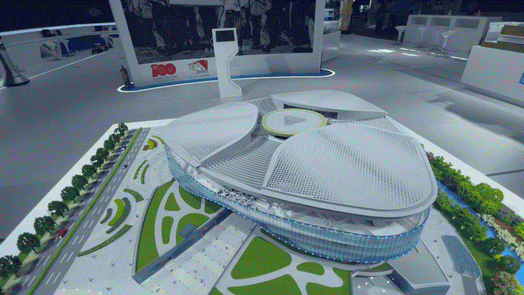 中建一局展区的“三叶花”建筑,引起了大家的好奇心。这是嘉兴市文化艺术中心项目的建筑模型,它是国际首次采用水平悬臂式开启屋盖、国内首次采用三等分圆形开启屋盖、国内首次采用隐藏式活动屋盖收纳设计的开合屋盖,通过BIM+物联网+5G技术,确保每片花瓣下设的四条运行轨道、八套台车及两套驱动系统同时启动,管理人员只需在手机上轻点,便可以让庞大的屋盖轻松动起来,实现屋面开合自如,让绚丽的“三叶花”迎风绽放。