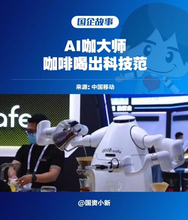 据中国移动展台工作人员介绍,5G AI咖大师经过百万数据级视觉训练、3万小时的双臂测试,以高精准复位能力,还原咖啡大师的每一个动作。只需等待短短几分钟,参展观众就能喝到一杯咖大师制作的兼具“未来感+科技感”的咪咕咖啡。