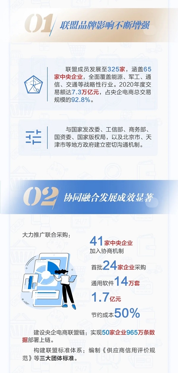 会上,国网电商公司作为央企电商联盟理事长单位发布中央企业电子商务联盟2021-2023《国企电子商务创新发展行动计划》,并介绍了联盟协同运营平台建设情况。央企电商联盟成员单位代表、部分中央企业和国有企业相关负责同志,合作伙伴、企业家代表现场参会,260家企业在线上参会。