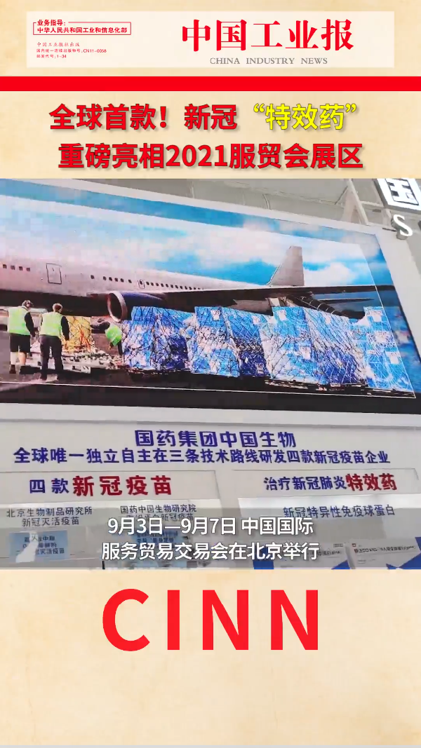 【中国工业报】全球首款!新冠“特效药”重磅亮相2021服贸会展区!