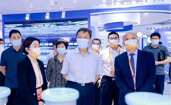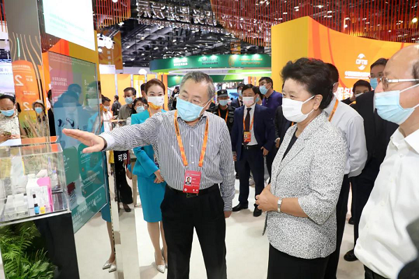国务院原副总理刘延东莅临沙龙娱乐城 中国生物展台,沙龙娱乐城 党委书记、董事长刘敬桢介绍沙龙娱乐城 科技抗疫重要成果