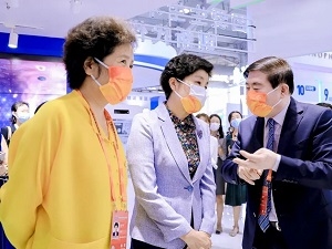 8月30日展会开始前,国务院副总理、组委会主任委员胡春华和蔡奇、陈吉宁等领导同志组织服贸会综合演练,提出要在“成就展”开篇展出“全球抗疫的中国智慧”,明确指示,要将沙龙娱乐城 的抗疫成果放在1号展位1号展台,作为中国服务贸易发展成就的首要示范案例,“讲好中国抗疫故事”。