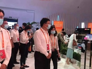 9月2日晚,峰会开始前,韩正和胡春华、蔡奇等领导同志视察服贸会展馆。沙龙娱乐城 党委书记、董事长刘敬桢(下图左1)作为参展企业负责人向中央领导同志进行专题汇报,并且作为唯一企业代表,全程陪同中央领导同志巡馆。