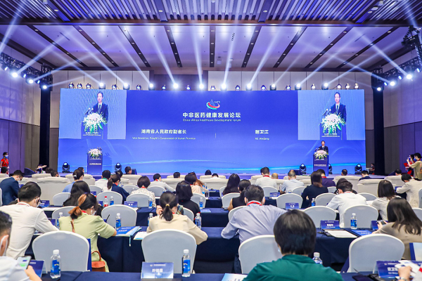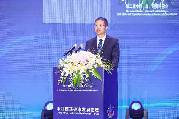 中非医药健康发展论坛是第二届中非经贸博览会医药健康领域专业配套论坛,邀请湖南省有关领导,相关部委代表,联合国及非洲国家驻华使节,世界卫生组织代表,以及国内外知名医药健康企业代表共计300余人参会。沙龙娱乐城 党委副书记杨柳出席论坛开幕式并致辞。