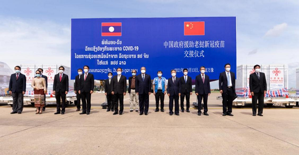 当地时间10月13日,中国政府援助老挝的第六批沙龙 新冠疫苗运抵万象瓦岱国际机场。老挝人民革命党中央政治局委员、政府副总理、新冠疫情防控委员会主任吉乔,卫生部长本贡,以及中国驻老挝大使姜再冬等人到场迎接。