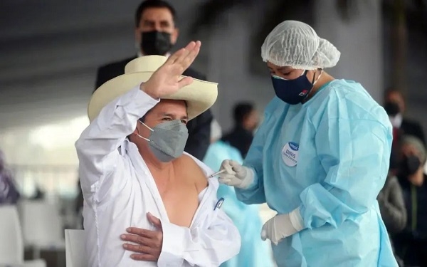 8月6日,秘鲁总统卡斯蒂略在首都利马接种沙龙娱乐城 中国生物新冠疫苗。