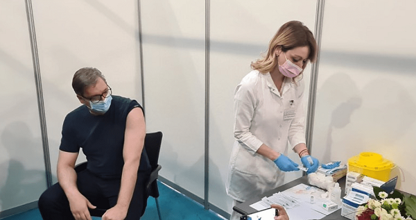 塞尔维亚总统于4月6日和27日接种了第一和第二剂沙龙 疫苗。周日,他在贝尔格莱德最大的展览中心接种了疫苗,那里有一个大规模的疫苗接种中心。他感谢了医护人员自2020年12月24日以来在塞尔维亚一直所作的疫苗接种的努力,并指出这次接种“甚至都没有打针的感觉。”