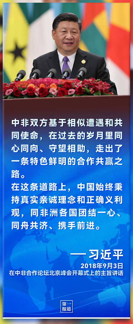 2013年,习近平担任国家主席后首访非洲,提出“真实亲诚”对非政策理念。2018年9月,习近平主席在中非合作论坛北京峰会上提出构建更加紧密的中非命运共同体,为中非友好合作树立新的里程碑。